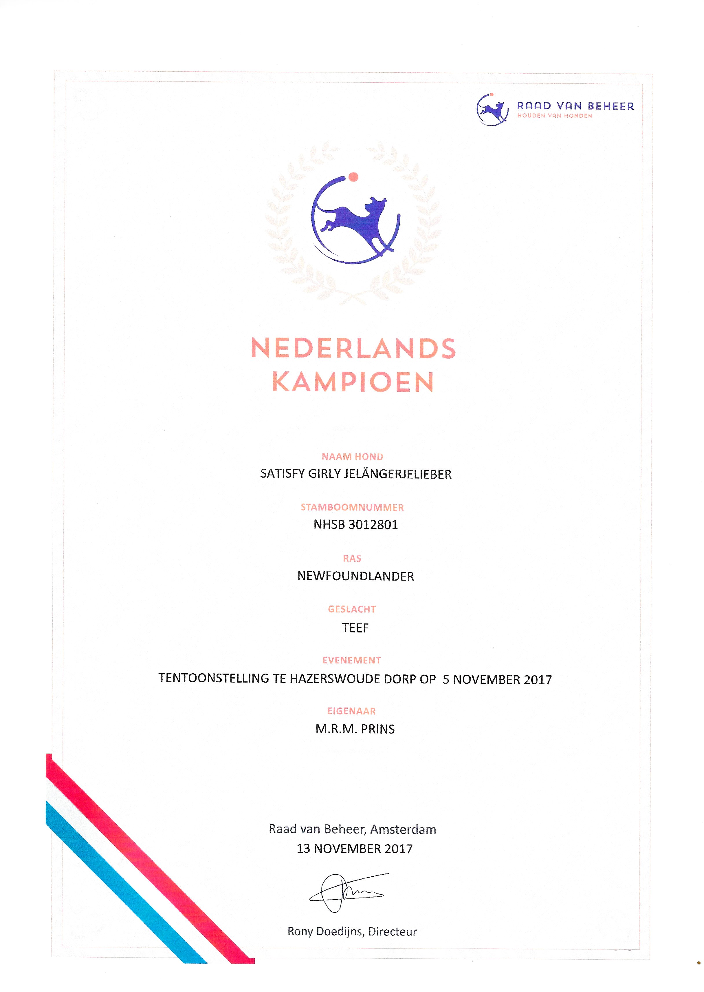 Atina v h Opperstok Nederlands jeugd kampioen & Nederlands kampioen.